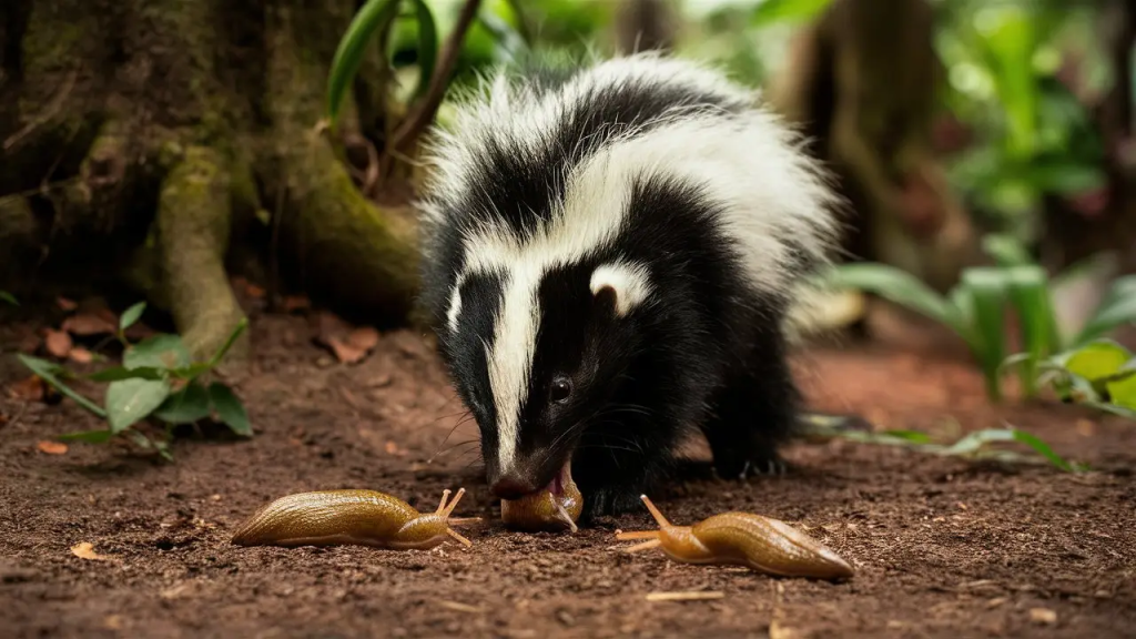 Pest Control: One of the most important benefits of skunks’ diet is their ability to control pests naturally. Skunks consume hundreds of insects, larvae, and small rodents every season, including beetles, crickets, caterpillars, and even mice and voles. This consumption helps reduce populations of garden pests that might otherwise damage plants, vegetables, or ornamental flowers. For instance, a single skunk can dig through soil in search of beetle larvae, indirectly aerating the soil while controlling harmful insects. By leaving skunks undisturbed, homeowners can enjoy a natural form of pest management without relying on chemical pesticides.